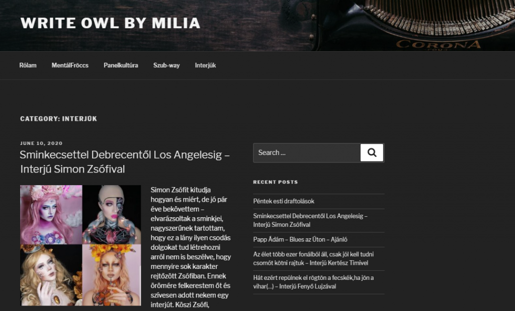 Az interjúk amelyeket készítek nagyon színesek – úgy vélem, hogy annyi tehetséges ember van, sokan még kezdők, még épp bontogatják a szárnyaikat és nekik is szükségük van arra, hogy legyen hely, ahol meghallják őket. Minden mű mögött ugye ott az alkotó – de az alkotónak van hangja, véleménye, meglátása, rengeteg célja és terve is – ezeket pedig szerintem érdemes megosztani, sőt. Nemcsak a smink vagy a divat világa vonz – bár szakmámból adódóan divattervező is vagyok – hanem tulajdonképpen minden.