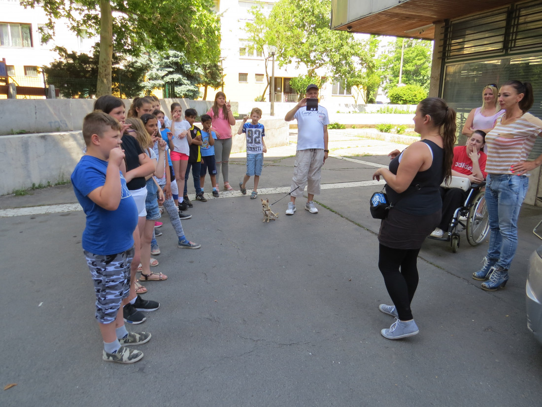 Délelőttönként érdekes előadások voltak. Hallhattunk és az írótolmácsoknak hála, olvashattunk is J a hallókészülékek típusairól, jövőjéről, a cochleáris implantátumokról. Laczka Zsanett elkalauzolt bennünket a munkajog világába, tájékoztatott bennünket a jogainkról és átbeszéltük mire figyeljünk a munkábaállás során. Bemutatót tartott nekünk Loványi Eszter és Mák, a hallássegítő-kutyája. Megismerhettük a NEO Magyar Segítőkutya Közhasznú Egyesület munkáját és, hogy mi mindenben lehet segítségünkre egy hangjelző kutya.