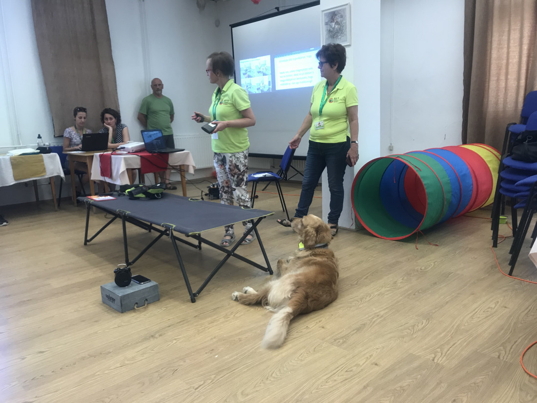 Délelőttönként érdekes előadások voltak. Hallhattunk és az írótolmácsoknak hála, olvashattunk is J a hallókészülékek típusairól, jövőjéről, a cochleáris implantátumokról. Laczka Zsanett elkalauzolt bennünket a munkajog világába, tájékoztatott bennünket a jogainkról és átbeszéltük mire figyeljünk a munkábaállás során. Bemutatót tartott nekünk Loványi Eszter és Mák, a hallássegítő-kutyája. Megismerhettük a NEO Magyar Segítőkutya Közhasznú Egyesület munkáját és, hogy mi mindenben lehet segítségünkre egy hangjelző kutya.