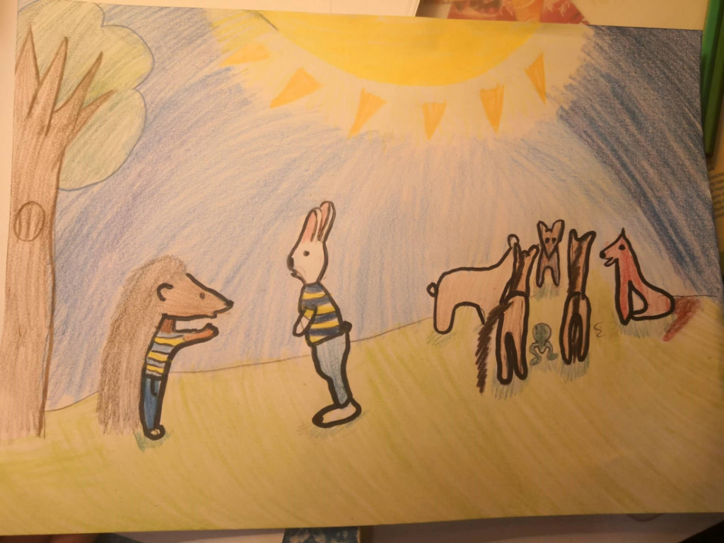 Falu végén, erdő szélén, egy kis bokor tövében van egy ház; abban lakik egy süncsalád, hat süngyermekkel. A legkisebb sün, Soma, hallássérült – hallókészüléket visel, amit Bagoly Doktor Bácsi írt fel neki –, s szájról olvas. Soma reggeltől estig folyamatosan szomorkodott: Nem voltak barátai, és a testvérei mindig elvették a játékát. – Miért nem játszik velem senki? Miért veszik el mindig a játékaimat? Miért nem hívnak el engem sehova? Szeretnék én is barátot! – mondogatta halkan magában. Egy napsütéses reggeli napon odaáll az édesanyja elé: – Mami, én most útnak indulok és keresek barátokat. A testvéreim elveszik a játékaimat, nem játszanak velem, egész nap unatkozom. Ígérem, sötétedés előtt hazaérek. Édesanyja meglepődött azon, hogy a legkisebb gyermeke el szeretne menni otthonról, méghozzá egyedül. – Édes fiam, ezer meg ezer rossz dolog leselkedik Rád az erdőben; nem hallod, ha veszély közeledik. Kérlek, ne menj, maradj itthon! Itthon biztonságban vagy! De Soma hajthatatlan, kitart az elhatározása mellett. – Drága Édesanyám, értsd meg: Nincsen maradásom. A testvéreim mindig elmehetnek, én miért nem mehetek sehova? Nem kell engem félteni, nagyfiú vagyok már! Sün Mami lehajtotta a fejét, s ezt mondta: – Jól van, gyermekem, tudod, nagyon féltelek, de ígérd meg, hogy ügyes leszel és vigyázol magadra! A tisztáson túl azonban ne merészkedj, mert ott az autóút, az nagyon veszélyes! S az ösvényről ne térj le, mert akkor nem találsz haza! Soma boldogan felkapta a hátizsákját és a kicsi cipőcskéjét, arcon csókolta édesanyját s az ajtó felé indult. Az ajtóban azonban útját állta a legnagyobb testvér, Huba. Huba nem szerette az öccsét, mert más volt, mint a többi. – Hova, hova, Soma? Tudod, hogy te nem mehetsz ki még az ajtón sem, mert nem jó a füled, és elrabol a keselyű! – gúnyolódott Huba. Soma fennhangon válaszol: – Megyek barátokat keresni, mert ti nagyon gonoszak vagytok, elveszitek a játékaimat és nem játszotok velem. Állj el az útból, szeretnék elindulni! A keselyűtől nem félek! Huba fogta a hasát a nevetéstől. – Te? Te egyedül a nagyvilágban? Hát jó, menj, öcsi, de figyeld meg: Hamar sötét lesz, és ott fogsz sírni az erdőben, mert nem fogod megtalálni a hazafelé vezető utat. És barátot sem fogsz találni, egyet sem! – mondta nevetve Huba. Soma azonban erre már nem figyelt. Kiviharzott az ajtón, majd kilépett a kapun is. A szíve elkezdett hevesen verni. A Nap melegen sütött. Soma felnézett. – Szia, napocska! – kiáltotta Soma – Szervusz, Soma! – köszönt vissza a Nap. – hát Te mi járatban, hova mész? – Megyek barátokat keresni, mert a testvéreim elveszik a játékaimat és nem játszanak velem. Mami nagyon félt engem, könnyek között engedett el, de én ügyes fiú leszek! – dicsekedett Soma. – Menj bátran, majd én vigyázok Rád. Innen magasról én minden veszélyt látok! – válaszolta a Nap. Soma boldogan sétált az ösvényen. Folyamatosan a fejében voltak Mami intő szavai, hogy az ösvényről ne térjen le. Kis idő múlva szembejött vele a róka. – Szia! Te ki vagy? – kérdezte Soma. – Miért ilyen furcsa a hangod? Mi van a füledben? Ez valami új? Rádió? – kérdezte a róka. – Nem értem. Beszélj egy kicsit lassabban! Szájról olvasok; elromlott a fülem. – kérte Soma. A róka megijedt és elszaladt. „A róka biztosan nem lesz a barátom” – szomorkodik Soma, majd tovább ballag. Megy, mendegél, az út szélén meglát egy gyönyörű kék virágot. – Te ki vagy? Leszel a barátom? – kérdezi. A gyönyörű kék virág azonban nem válaszol… Hamarosan találkozik a hatalmas medvével. A medve meglepetten méregeti az aprócska sünit. – Te ki vagy? Leszel a barátom? – kérdezi Soma. Ugyanúgy, mint a róka, a medve is megijed Soma hangjától és elszalad. Soma lehajtott fejjel tovább bandukol és találkozik a békával. – Te ki vagy és miért ugrálsz? A béka meg sem hallotta a süngyermek kérdését, nagyokat pattanva távolodott. Soma még szomorúbb lett, s félni kezdett. – Senki nem szeretne a barátom lenni! Most már félek egyedül, haza akarok menni! – kiabálta sírással küszködve. Ekkor lépett oda hozzá a nyuszi. – Szia, te kis süni, ne félj, miben segíthetek? – kérdezte jelnyelven. Soma meglepődött. A nyuszi igencsak jól artikulált, de vajon miért kalimpál a kezével? – Te ki vagy? Miért mutogatsz? Te is barátot keresel? – kérdezi megszeppenve Soma. – Nyuszi vagyok és a hallókészüléked miatt feltételezem, hogy hallássérült vagy. Az én szüleim siketek, és otthon jelnyelvet használunk. Ne haragudj, de azt gondoltam, ismered a jelnyelvet! Nem akartalak megbántani. Leszek a barátod! – Tényleg leszel a barátom? – kérdezi félve Soma. – Természetesen, örömmel! – válaszolta Nyuszi. – Jaj de jó! Soma vagyok, a szüleidhez hasonlóan siket, de a Bagoly doktor Bácsi azt mondta, hogy a hallókészüléket viselnem kell. A jelnyelvet nem ismerem, tényleg olyan egyszerű dolog? – Nagyon szívesen megtanítom Neked, hiszen ez a Te világod. Gyere el hozzánk, bemutatlak a szüleimnek! Biztosan örülni fognak neked! – Most ne, mert hamarosan sötét lesz, és Mami nagyon fog izgulni, ha nem érek haza. – mondta Soma. – Ne félj, utána hazakísérlek, tudom, hol laktok! – válaszolta a Nyuszi. Nyuszi Somát bemutatta a szüleinek, akik a tisztás mellett laktak. A szülők nagy szeretettel fogadták a kis vendéget, etették, itatták, ellátták mindenféle földi jóval. Nagyon sok jelet tanítottak neki. Soma arca felvidult; boldog lett. „Mégis léteznek barátok, akik engem elfogadnak?” – gondolta magában. Kis idő múlva Soma megköszönte a kedves vendéglátást és Nyuszi kíséretében hazaindult. A tisztáson azonba